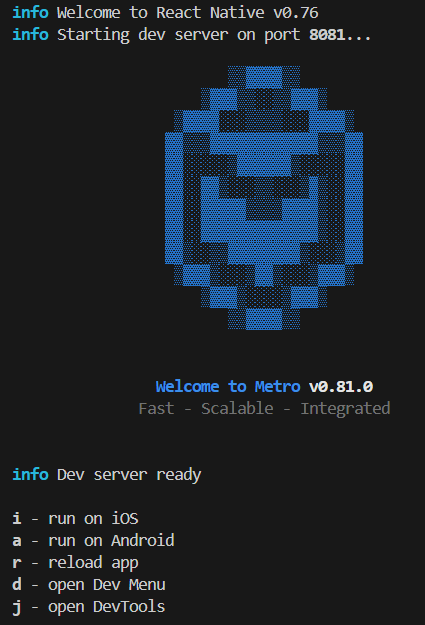 1. Visual Studio Code에서 프로젝트 폴더 열고 npx react-native start 입력