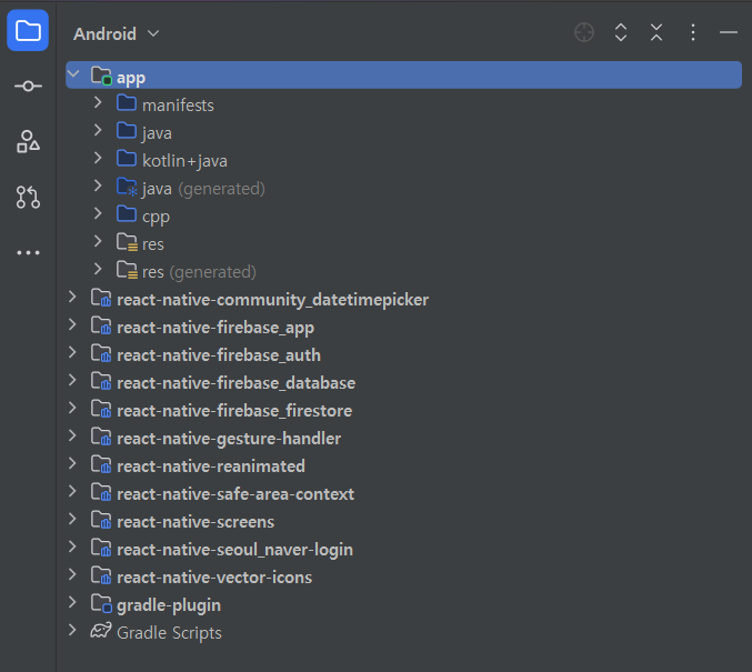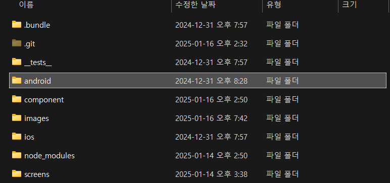프로젝트 폴더를 보면 android 폴더가 있는데 안드로이드 스튜디오에서 android 폴더 경로를 열기