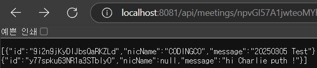 localhost:8081/api/meetings로 firestore에 저장된 meeting 컬렉션의 id, title, imageUrl 조회