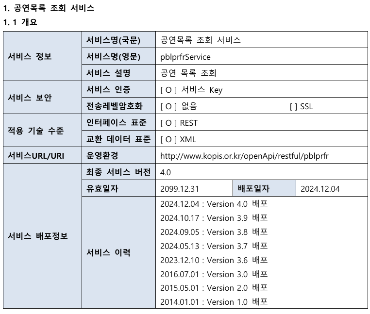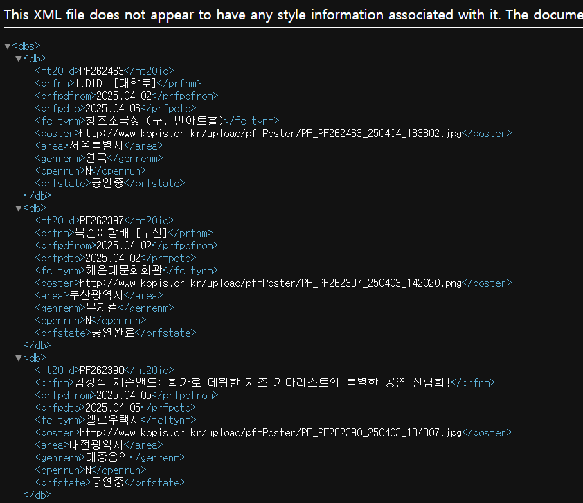 KOPIS에서 제공하는 공연 정보 Open API를 가져와서 사용해보도록 하겠다